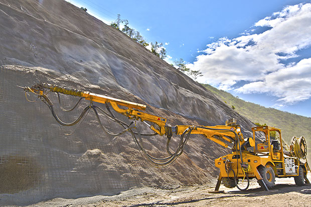 Revestimento e reforço de taludes utilizando técnicas modernas de concreto projetado.