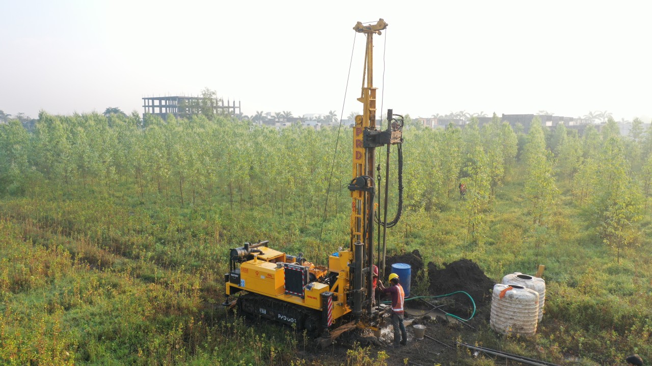 Investigação do subsolo para identificar as características geotécnicas e definir o tipo ideal de fundação.